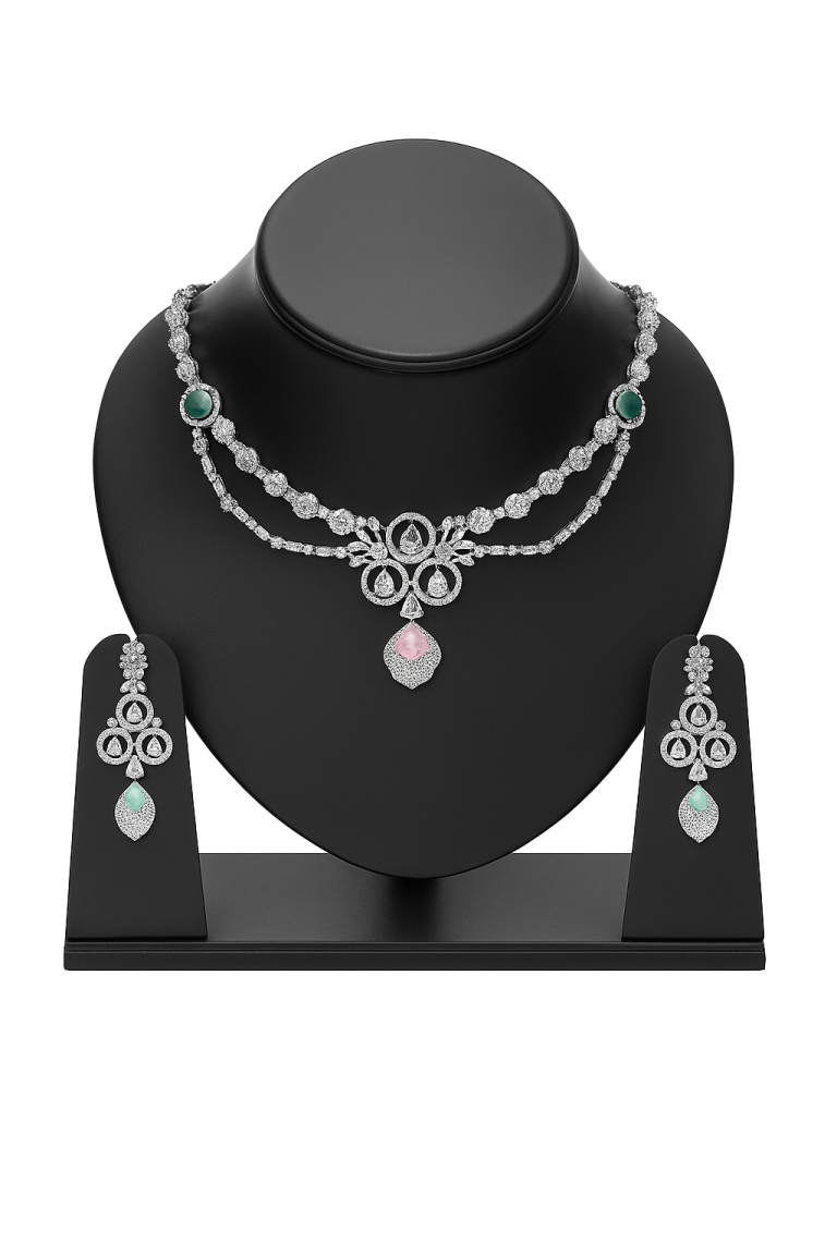 Elegant AD necklace crafted with brilliant stones and fine detailing.